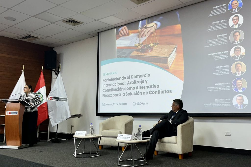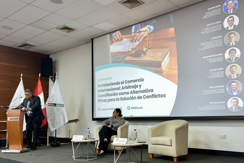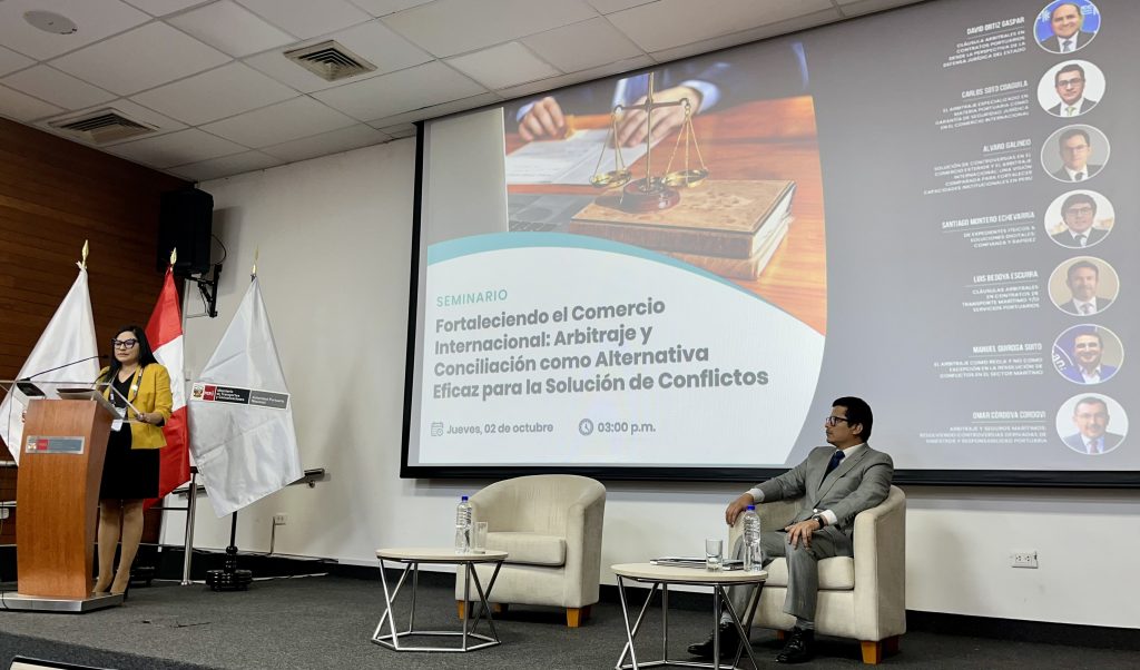 Este jueves 2 de octubre, CONUFI participó en la presentación oficial del Centro de Arbitraje de la Autoridad Portuaria Nacional – APN, y en su seminario “Fortaleciendo el Comercio Internacional: Arbitraje y Conciliación como Alternativa Eficaz para la Solución de Conflictos”; ambos en el auditorio del Ministerio de Justicia y Derechos Humanos, en Miraflores, Lima.